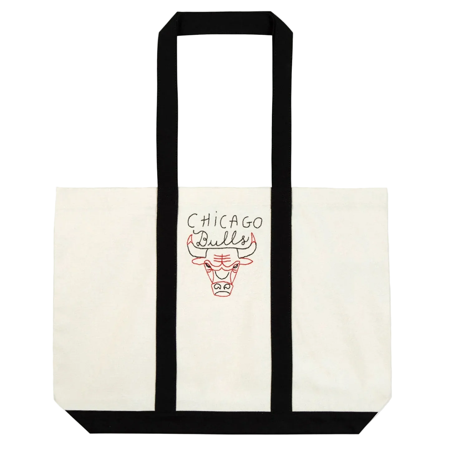 Our Ozanam bag has a classic cut with a handle and features embroidery on the central front. Its embroidery features the legendary Chicago Bulls logo revisited by Maison Labiche.