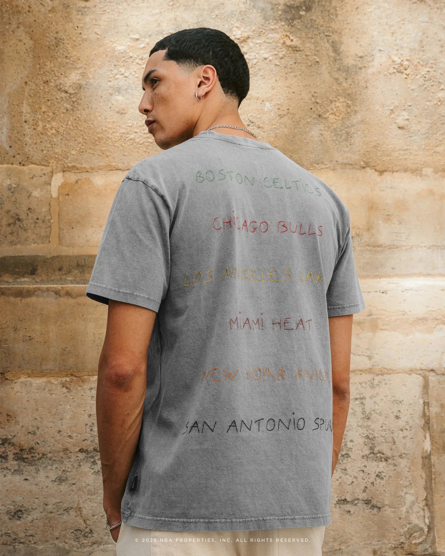 Our must-have Patureau T-shirt has a loose fit, a ribbed neckline, double needle finishes at the bottom of the sleeves and body. Its embroidery pays tribute to iconic NBA teams.
